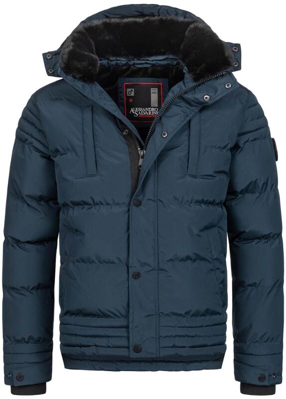 Alessandro Salvarini Herren Winterjacke mit Fellkragen O-281-Navy-Gr.S