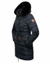 Navahoo Paula Damen Winter Jacke Mantel Parka warm gefütterte Winterjacke B383 Blau schwarzem Fell Größe S - Gr. 36